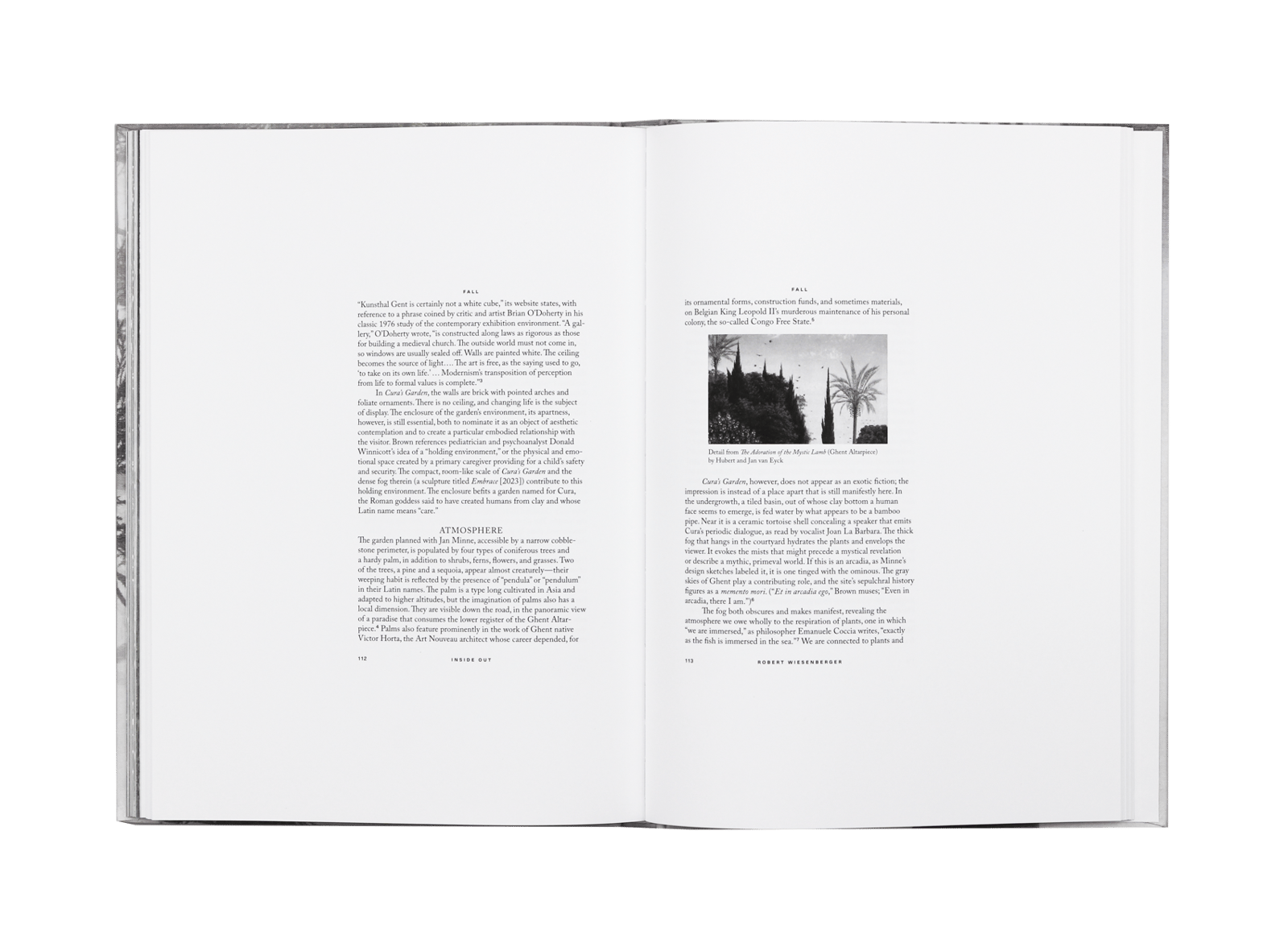 New essays by Laura McLean-Ferris, Laurie Cluitmans, Robert Wiesenberger explore the conceptual, formal, art historical, and affective valences of Cura’s Garden, and a roundtable conversation between Brown and Laura Herman, Jan Minne, and Valentijn Goethals considers the history and development of the project, from the artist’s 2019 film Cura, a precursor to the garden, through present concerns around the maintenance and unfolding nature of this site-specific work.