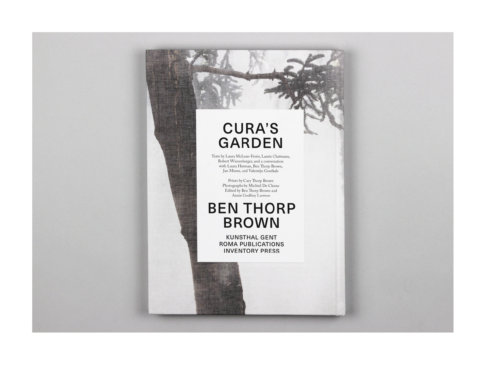 In 2023, American artist Ben Thorp Brown opened Cura’s Garden, a long-term, immersive exhibition set in the medieval garden of Kunsthal Gent, a former Carmelite monastery. Expanding on the Roman myth of Cura, the project brings together a theatrical assortment of trees and other flora, fog, sculpture, and sound—elements that cohere into a dense, indeterminate sensorial experience. This richly illustrated volume, organized around the seasons, features vivid documentation across two years of the garden’s young life alongside linocut botanical prints by the artist’s mother, Cary Thorp Brown.