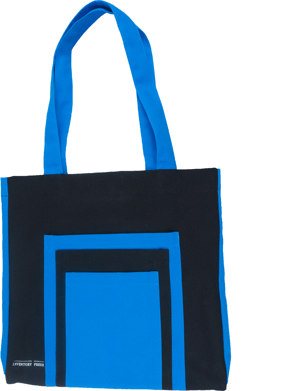 The Inventory Press Bag is a bag about formats—the smallest pocket fits a mass market paperback, the largest pocket is sized for LPs, and the two pockets in between each fit electronic reading devices. Designed in collaboration with Mary Ping of Slow and Steady Wins the Race.