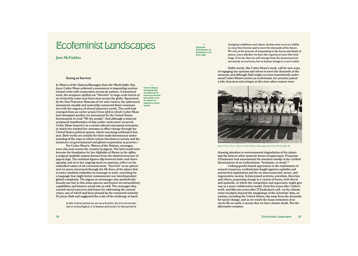 Edited by Catherine Taft and Jane McFadden, the book contains essays, poems, artwork, and archival material from Myriam Bahaffou, Heather Davis, Silvia Federici, Amy Gerstler, Audre Lorde, Anna Lowenhaupt Tsing, Lola Olufemi, Yasmine Ostendorf-Rodriguez, Himali Singh Soin, Anne Waldman, and others. Artists include Alliance of the Southern Triangle (A.S.T.), Alicia Barney Caldas, Meech Boakye, Beverly Buchanan, Carolina Caycedo, Judy Chicago, Agnes Denes, Francesca Gabbiani, Helen and Newton Harrison, Masumi Hayashi, Institute of Queer Ecology, Kite, Leslie Labowitz Starus, Ana Mendieta, Otobong Nkanga, Alicia Piller, Jaune Quick To See SmtihJaune Quick-to-See Smith, Aviva Rahmani, Tabita Rezaire, Yo-E Ryou, Emilija Škarnulytė, A.L. Steiner, Diana Thater, and Cecilia Vicuña.